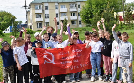Ключевым моментом было задание найти штаб, где спрятано знамя. Передвигаясь по указательным стрелкам, участники игры добрались до конечной точки, нашли заветный ключ и достали красное знамя – флаг Победы и, конечно же, победила дружба! Все ребята получили сладкие призы!